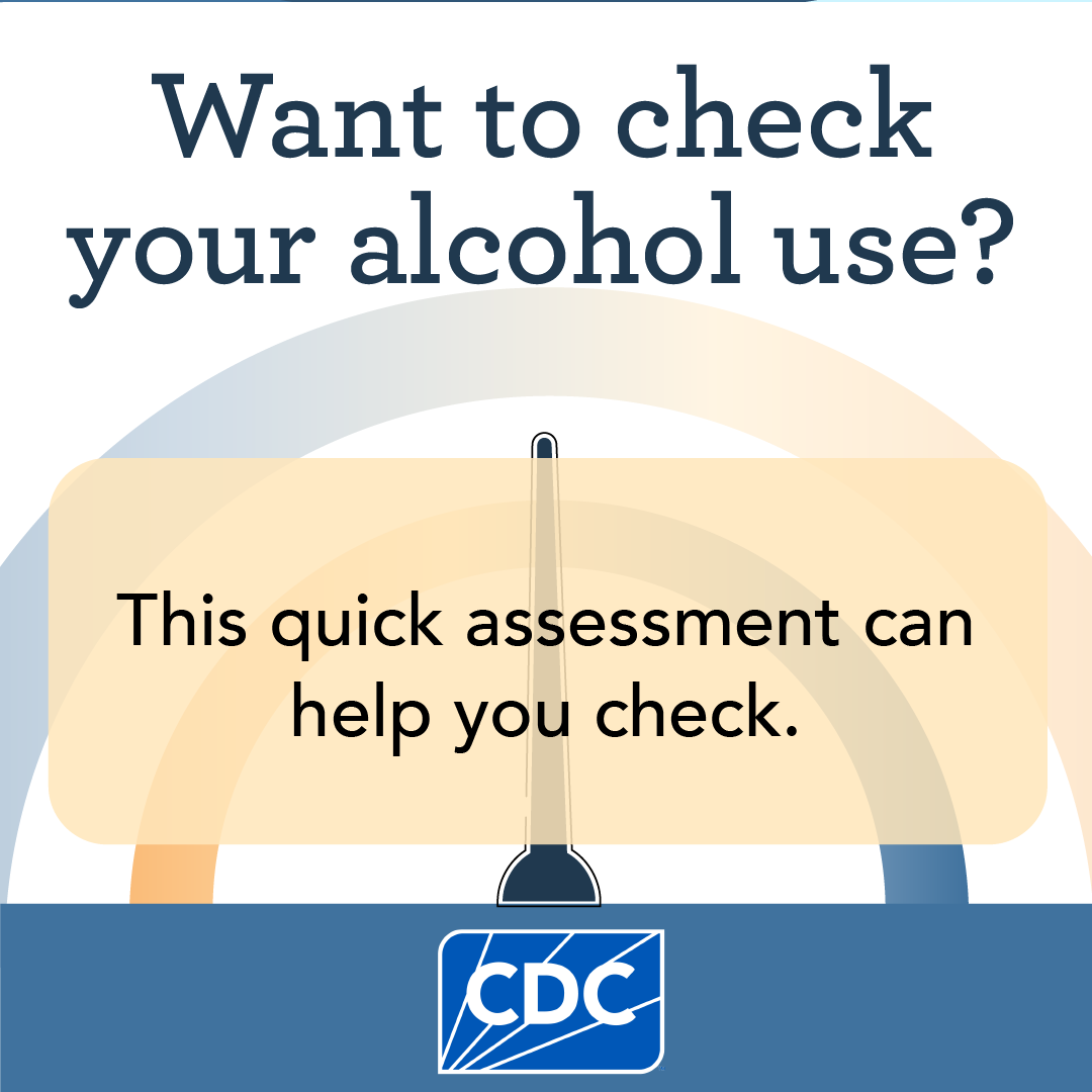 Take this quick assessment to check your alcohol use: www.cdc.gov/alcohol/checkyourdrinking.