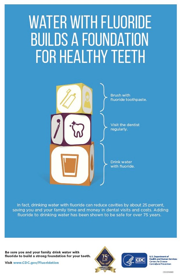 Be sure you and your family drink water with fluoride to build a strong foundation for your teeth.